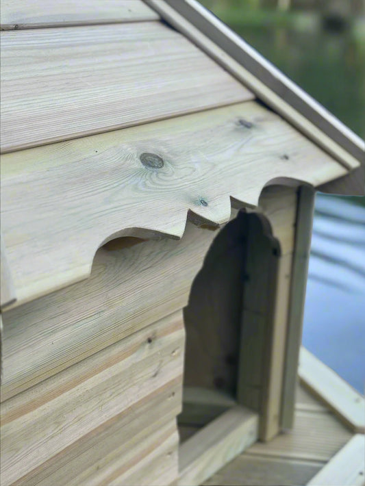 Each house is expertly built in the UK using high-quality, weather-resistant materials. Not only are they functional, offering a secure nesting and resting place for waterfowl, but they also add visual appeal to your garden or landscape.