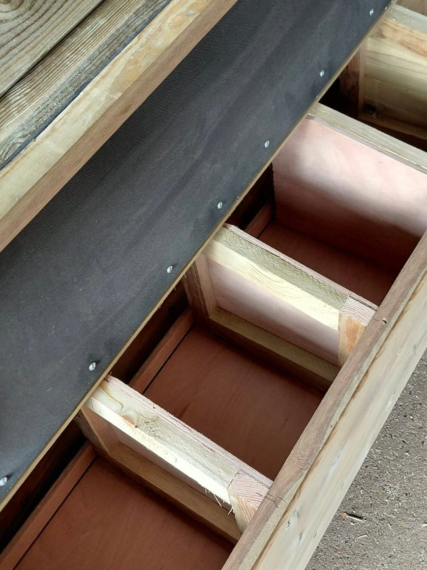 - Two external nestboxes with 4 compartments in each